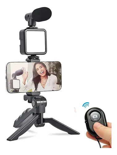 Kit Estabilizador y tripode Vertical y Horizontal Celular Luz Micrófono C remoto