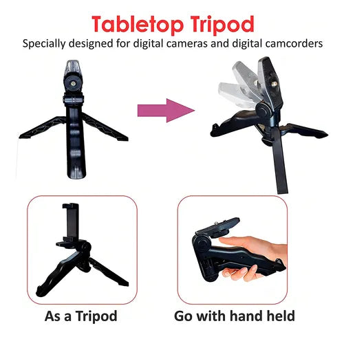 *Mango de trípode de doble uso: Diseñado con placa plegable, el trípode es doble aplicable para el agarre de la mano y el asentamiento de la mesa, la forma de diseño ergonómico hace que el agarre sea más cómodo.